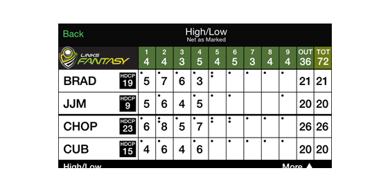 You can play every time you go to the course, creating multiple entries in the Links Fantasy tournament. Give yourself multiple chances to win. Every entry is eligible for a chance to share in the purse.